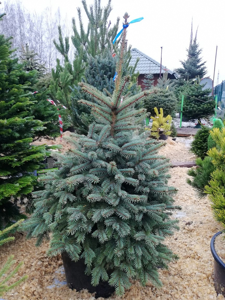 Идеальное новогоднее дерево для людей с нестандартным мышлением. Её необыкновенно голубые ветви образуют правильные плотные ярусы, почти горизонтальные, а основание настолько густо оформлено хвоей, что подарки проще и оригинальней класть на ветки. Иголочки её страптивы, но при этом совершенно не сыпучи!