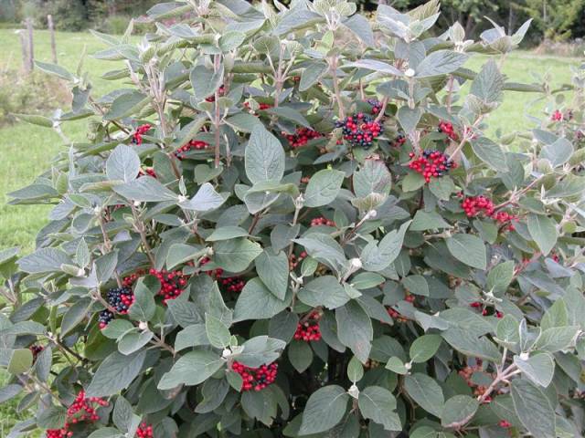 Калина Mohican- растет на солнце и в полутени, любит плодородные почвы, без застойного переувлажнения. Морозостойка. Высота 2-4 м. Крона диаметр 2,5-4 м. Плотная, компактная. Листья яйцевидные или овальные , с выраженным жилкованием, морщинистые, темно-зеленые. Цветение очень обильное в июне. Цветы - крупные щитковидные соцветия кремово-белого цвета. В начале созревания (в августе) все плоды красного цвета, затем чернеют, причем не все одновременно, и соплодия пестрят красными и черными ягодками. Полное созревание наступает в сентябре.