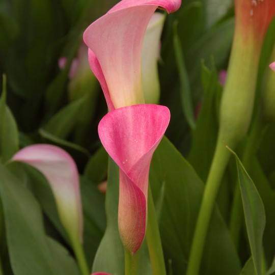 Калла Роуз Квин - многолетний, крупноцветковый сорт. Высота растения 50-60 сантиметров. Период цветения: июнь-июль-август. Цветок крупного размера, в форме свечи, лавандового оттенка. Для посадки выбирают полутенистые места с ярким рассеянным светом, почва слабокислая. Каллы влаголюбивы, отлично растут у воды и различных искусственных водоемов. В апреле клубень необходимо разбудить, высадив его в контейнер с землей, когда угроза заморозков пройдет, можно высадить в открытый грунт. Перед заморозками клубни выкапывают, промывают и убирают в сухую тёмную кладовку, через 1,5 недели нужно обрезать корни и листья, убрать на хранение при температуре +3°С +5°С.