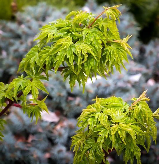 Один из самых интересных кленов, который редко бывает в продаже. Он является ценным дополнением для сада и заслуживает пристального внимания. «Shishigashira» в переводе означает «голова льва». 7-лопастные маленькие листья, 3-5 см длиной и шириной, морщинистые, иногда слегка закрученные, неравномерно разрезанные, глубокого зеленого цвета. Осенняя окраска интенсивно золотисто-желтая, с розовым и карминовым налетом.