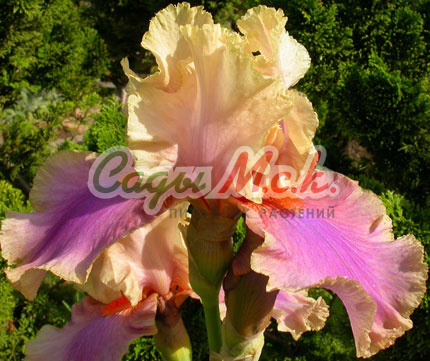 Рассада ириса Acoma относится к высоким бородатым ирисам, известным как пликата, т.е. в которых яркий рисунок располагается на более светлом фоне. Это однократно цветущий ирис, на каждом стебле которого развивается от 5 до 6 бутонов. Нижние доли (фолы) имеют светлый фон цвета слоновой кости и фиолетовые края, мягко переходящие друг в друга. Верхние доли (стандарты) – светло-светло-голубые, вертикально подняты вверх. Бородка – желтая, малозаметная. Верхние и нижние доли слегка гофрированные. Цветение среднее.