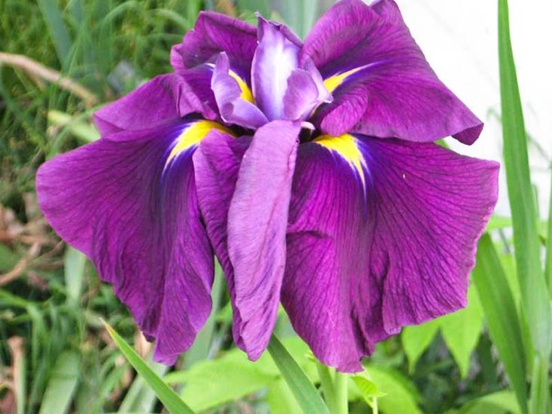 Соцветия у ириса Гуд Омен симметричные, крупные, отдельные цветки могут достигать до 22 см в диаметре. Они распускаются в июне, а период цветения может продолжаться до начала июля. Все лепестки окрашены в яркий фиолетовый цвет с более темной полосой по центу, а сердцевина желтая. Цветы подходят для создания ярких летних букетов — они хорошо сочетаются с яркими и пастельными тонами.