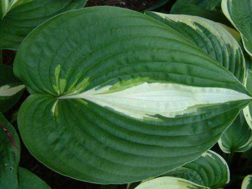 Хоста Аnn Kulра – многолетнее декоративное растение, образующее ярусный куст высотой до 50 см. Листовые пластины достаточно плотные, шелковистые, со слегка волнистым краем, небольшими выемками и сильно выраженным жилкованием. Они образуется весьма декоративный, плотный и компактный куст, который в середине лета зацветает, выбрасывая цветоносы с небольшими, лавандового цвета колокольчиками. Но заметным растение становится благодаря цвету своих декоративных листьев. Сердцевидные, голубовато-зеленые с золотисто-кремовым центром и зеленым краем – такую красивую окраску невозможно не заметить. Со временем светло-кремовый центр становится шире, а вот окантовка листа, наоборот, сужается. Гибридный сорт хорошо себя чувствует и в тени, и на солнце, предпочитая купаться только в утренних его лучах. Он может длительное время расти на одном месте. Но для сохранения расположенной по центру полосы его желательно часто делить.