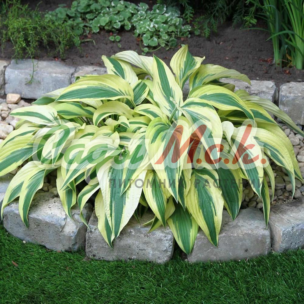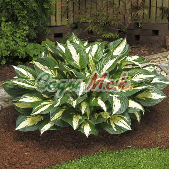 Хоста Аntiосh – декоративный многолетник с мощными, красивыми по форме и цвету листьями. Его длинные, овальной формы, ребристые листовые пластины с зауживающимся концом образуют плотный компактный куст, который может достигать 55 см в высоту. Но настоящее его украшение – матовые зеленые листья с широкой светло-кремовой, почти белой каймой. Причем на кусте практически нет двух одинаковых по раскраске листочков. В середине лета гибридный многолетник зацветает, выбрасывая цветоносы с бледными лавандовыми цветками. Сорт может отлично себя чувствовать в любом месте сада, но предпочитает плодородные, слегка кислые, влажные почвы. Любит располагаться в ажурной тени, но может выдержать и прямое солнце.
