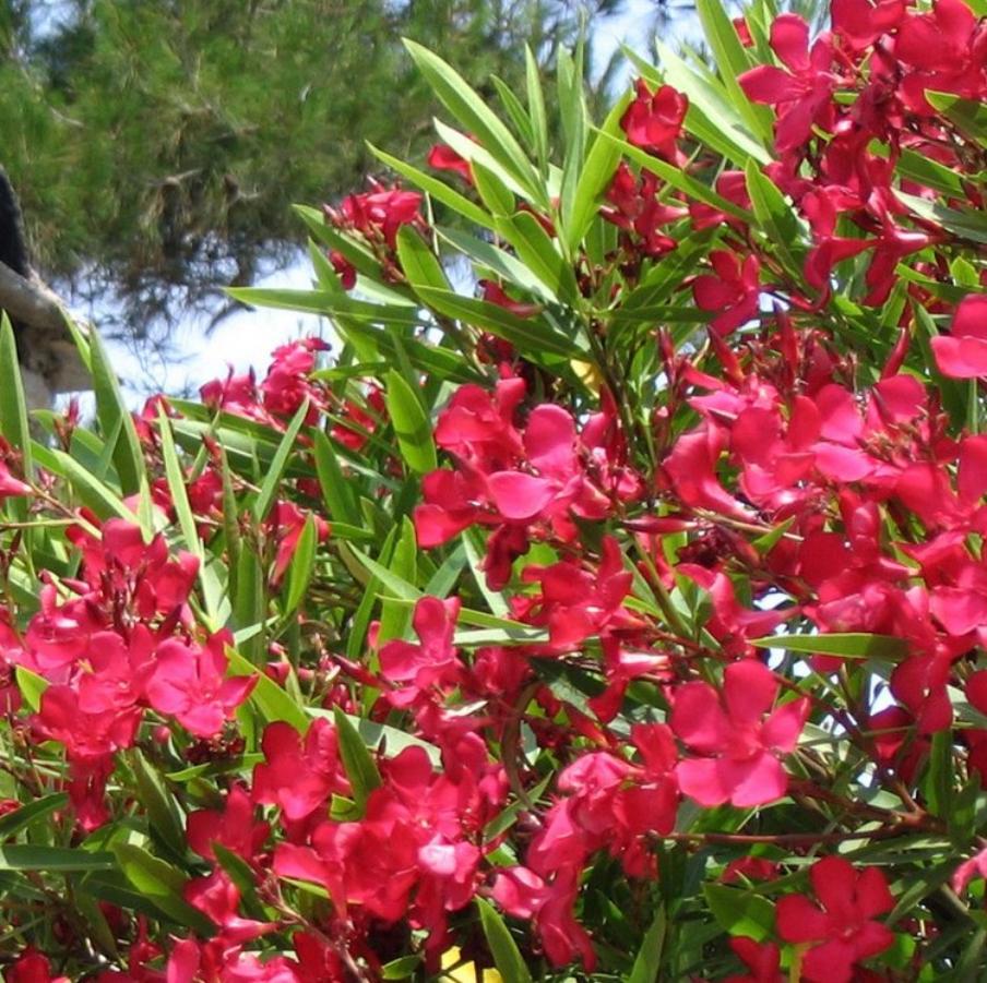 Олеандр обыкновенный Эллада (лат. Nerium oleander Hellas) - быстрорастущий кустарник. Стебли мощные, коричневые, тонкие. Листья очень длинные, зеленые, слегка изогнутые вдоль, глянцевые. Цветки многочисленные, ярко-красные с розовым оттенком, простые, очень ароматные, цветут в соцветиях. Внимание! Олеандр - ядовитое растение, поэтому при его культивировании требуется осторожность.