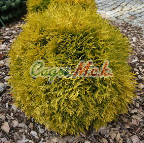 Узкая острая желто-хвойная туя высотой до 10 м. и диаметром кроны до 1,8 м. Дерево растет довольно быстро, ежегодно прибавляя до 30 см высоты. Имеет прямой, ровный и стройный ствол, к которому плотно прижимаются скелетные ветви, образуя красивую устремленную вверх общую форму дерева.Скелетные ветки короткие и мощные, тесно прижимаются друг к другу, а на концах начинают сильно ветвиться. За счет такого строение крона выглядит очень густой и плотной, формируется симметрично. Хвоя густая, яркая, золотисто-жёлтая, не подгорает на солнце, зимой приобретает бронзовый оттенок. Хорошо себя чувствует как на солнце, так и в полутени. На солнце не горит.<br>
