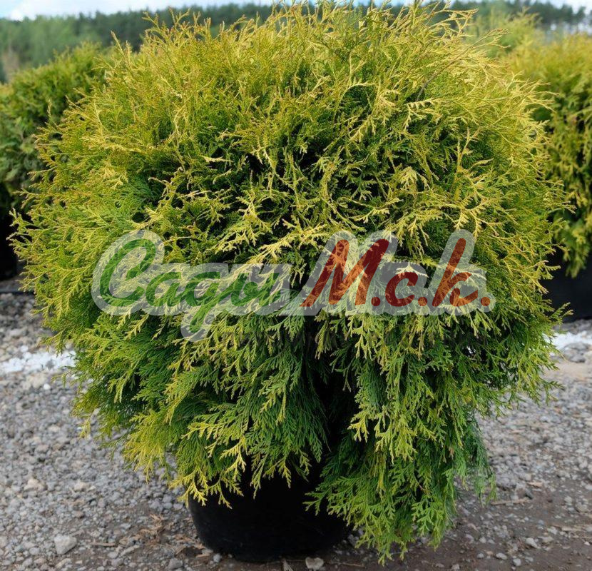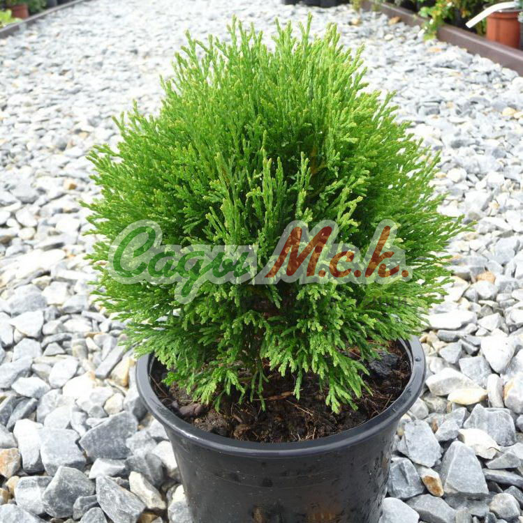 Саженцы туи западной Tiny Tim, шаровидного карликового кустарника, можно приобрести в нашем профессиональном питомнике. Взрослое растение не превышает 1 м в высоту (обычно 0,5 м) и около 1,5 м в ширину. Туя формирует шаровидную, плотную крону. Хвоя – чешуевидная, темно-зеленого оттенка. Сорт медленнорастущий, но пользуется популярностью благодаря своей неприхотливости в выращивании. Крупномер западный Tiny Tim не боится продолжительной засухи или избыточного переувлажнения. Туя используется в одиночных и групповых посадках, а также для облагораживания каменистых горок.
